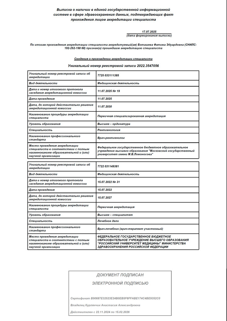 • 2025 - Российский центр неврологии и нейронаук, г. Москва, врач-рентгенолог