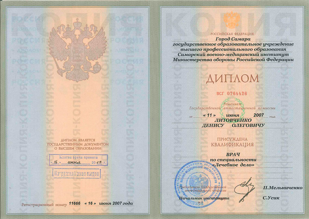 • 2007 - Самарский военно-медицинский институт, Лечебное дело
