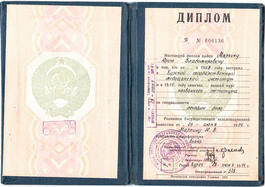 - 1974 – Курский государственный медицинский университет — Лечебное дело, г. Курск