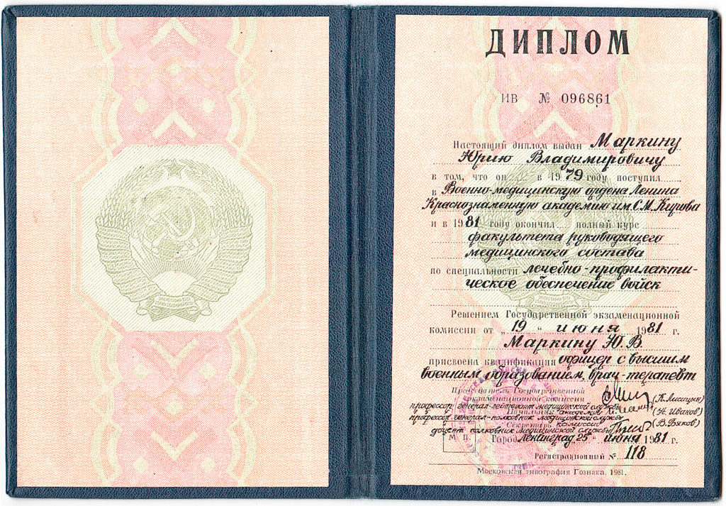 - 1981 – Военно-медицинская академия имени С. М. Кирова — Терапия, г. Санкт-Петербург